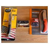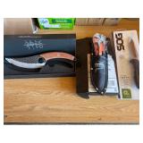 HUNTING ITEMS Simmons Spotting Scope, Tripod, Case Nikon 10x40 Binoculars Swift 3x9 Scope Brigenius 3x9x40 Binoculars (13) Trail Cameras (30+) Hunting Knives Otis Military Gun Cleaning Kit WWII Gun Cleaning Kit Several Boxes of Ammunition Elk Antlers API Outdoors 20' Treestand, New Large Live Trap Duck Decoys (2) Snare Traps Misc. Hunting Items