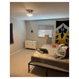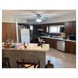 Two-bedroom bungalow home with kitchen, living room, rear living room, 1.5 baths, basement and garage.