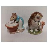 | (2) Beatrix Potter Old Mr. Brown Ceramic Animal Figurines |