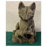 | Carved Wood Fox and Kit |