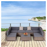 (100) Outsunny Patio Life Grey 7-Piece Steel Plastic Rattan Patio Conversation Set with Grey Cushions