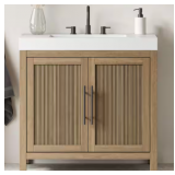(14) Cargrove 36 in. Single Sink Oak Bath Vanity with White Resin Composite Top (Assembled)
