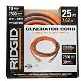 RIDGID 25 ft. 10/4 Heavy Duty Outdoor L14-30 Amp Generator Extension Cord with Lighted End, Orange/Grey