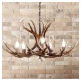 (44). JONATHAN Y Eldora 30 in. Adjustable Resin Antler 5-Light Brown LED Chandelier