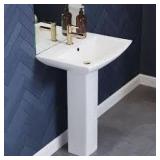 (166). Swiss Madison Sublime Pedestal Bathroom Ceramic Vessel Sink Round Single Faucet Hole in White