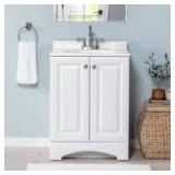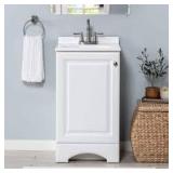 - White vanity top is easy to install with silicone caulking