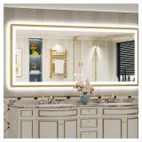 72x40 Gold Beveled Framed LED Bathroom Mirror with Lights, Backlit & Front Lit, Anti-Fog Metal Frame Lighted Vanity Mirror for Bathroom Wall, 3 Colors, Dimmable, Memory, HD Tempered Glass