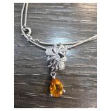 Sterling Silver Chain With Orange Pendant |