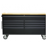 Upgrade your workshop with the robust and spacious 61-inch Tool Chest. This tool chest, featuring a sleek black powder coating, provides ample storage with its 9 drawers and a durable rubber wood top, making it a perfect solution for professionals and DIY enthusiasts alike.