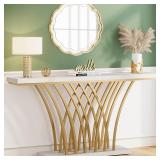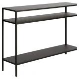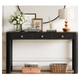 ModernLuxe Rustic Console Table with Curved Corners for Safety Entryway Table with 3 Concealed Drawers Sturdy Sofa Table with Thick Legs for Hallway and Living Room (Black)
