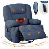 (13) YOFE Oversized Widen Seat 160° Lay Flat White Winter Microplush 270° Swivel Rocking Recliner Chair with Massage and Heating