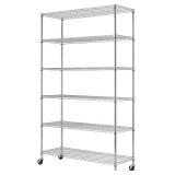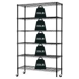 HCY 6-Tier Storage Shelf Heavy Duty Shelving Unit NSF Height Adjustable Metal Rack with Wheels for Laundry Bathroom Kitchen Garage Pantry Organization 2100 LBS Capacity-82*48*18 inch, (Black)