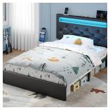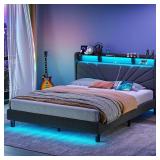 RGB LED with Remote Control: This bed's headboard features customizable RGB lighting with 12 colors, adjustable brightness, 4 scene modes, a timer, and speed settings