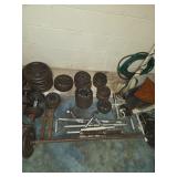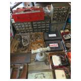Mac 20 Drawer side by side tool box with 5 drawer attached cabinet, Miller 330A/BP Arc Welder, Atlas Metal Lathe, Sanborn Heavy Duty Industrial Air Compressor, 80 gal, 200 psi, 230 volt, Vintage/antique Keller Power Hack Saw, Wilton Bullet Bench Vise, Shop Smith, Bosch Chop Saw on stand, 16 Speed Drill Press, Cleveland Rotating Pipe Vise, Bosch RA1171 Bench top Router, Antique Ajax Pneumatic Air Lift Bumper Jack, Delta Model 50-775 Single Stage Dust Collector, Snap-On 2 Ton Floor Jack, Machinist Vise, Miller Watermate 1A Cooling System, Acetylene Tanks, Welding Equipment and Supplies, Automobile Tools