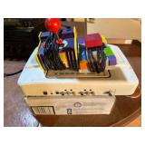 The Collectors Clearinghouse Round Wood and Glass Table with Iron Base and Two Iron Chairs Two Vintage Steamer Trunks with Metal Hardware Wood and Metal Bound Steamer Trunk with Hinged Lid Rubbermaid Professional Storage Waste Bin Pull-Out Units Yellow Metal Locker with Ventilated Door and Built-in Handle Decorative Table Lamps with Floral Themes Silver-Tone Mirrored Candlesticks and a Globe on Brass Base Anchor Glass Terra Snack Set with Glass Tray and Green Glass Bottle Metal Oil Can and Oil Can Lamp with Fabric Shade KRK Rokit 6 Powered Studio Speakers Bogen Professional Tripod with Auto Dolly Attachment Skil-Saw Circular Saw, Craftsman Drill, PowerShot Stapler, and Level Power Tools Including Circular Saws and Jigsaw Delta 16-Inch 2-Speed Scroll Saw and Black & Decker Jig Saw Kit Glass Fish Tank With Wood Frame and Light Fixtures Ball Mason Jars with Wide-Mouth Lids, Assorted Sizes Department 56 Snow Village Christmas Cove Lighthouse 1:24-Scale Larry Dixon 1999 Miller Lite Top Fuel Dragster Model RCA Vehicle Test Meter System with Software Label RCA Military Vehicle Test Meter, Model 12259265 Churchill Blue Willow Plates, Cups, and Decorative Box Glassware and Ceramic Figurine with Basket Amber Depression Glassware Set and Sierra Ironstone Plate Decorative Studio Pottery and Marble Goblets Kitchenware and Glass Items JVC Compact Component Stereo System with Multiple Units Glassware Lot with Wooden Pitchers and Shot Glasses Two Longaberger Woven Wooden Baskets with Handles Framed Print of 'The Prayer Warrior' by William L. Maughan Decorative Items Including Figurines, Art Prints, and a Book Illuminated Jesus Artwork with Integrated Clock Three 1997 Apple 'Think Different' Posters in Black Frames Positive Grid Spark 40 Guitar Amplifier with Control Panel Accordion by Bischlaggio in a Fabric-Covered Case Conn Alto Saxophone with Case and Mouthpiece Framed Oklahoma Sooners Logo with Memorabilia Vintage Diving Gear Including U.S. Divers Co. MR-12 Regulator and Accessories Two Travel Bags: Brown Leather and Green Fabric with Handles Wooden Picture Frames Picture Frames in Various Materials and Finishes Large Wood Tower Speaker Cabinet with Four Drivers Wooden Ladder Shelf, Nesting Tables, and Assorted Chairs Black Glassware with Mikasa Two-Tier Server Bakeware and Electric Fondue Pot Kitchen and Baking Tools and Accessories Bound Volumes of The Southwestern Reporter (Volumes 26–30) Mid-20th Century A.J. Nystrom Kansas Wall Map, Map No. PS 115 Home Decor Items Collection Leather LARPing Accessories, Including Belts and Pouches 5 Southwestern Reporter Legal Volumes, 1893-1898 Three Classical and Educational Books David Roth's 'Expert Coin Magic' Hardcover Book 'Roger Klause In Concert' by Lance Pierce, First Edition Book 'Annemann: The Life and Times of a Legend' by Max Abrams, First Edition 'The Magic of Michael Ammar' First Edition, 1991 Three Religious Books: Bible Dictionary, Holy Bible, and New Testament Polk Audio Center Channel Speaker with Dual Binding Posts Noritake Virtue 2934 45-Piece Fine China Dinner Set Vintage 35mm and Instant Cameras Including Minolta, Canon & Polaroid Pentax ME Camera Bundle with Lenses, Flash Units, and Accessories Bell & Howell Autoload Projector and Technicolor Model 412D Color Camera Linemaster KS-1682IL2 Foot Switch Round Wood Pedestal Table with Castors Solid Wood Six-Panel Door Vintage Metal Mini Bike Frame With Knobby Tires HJC CS-X2 Full-Face Helmet and Sand Snake MX Tire Bell & Howell 545 Filmosound Specialist Projector Stackable Plastic Storage Bins with Red Hinged Lids Cake Decorating and Baking Cookbooks Decorative Items Featuring Wolves and Carved Stone Figurine Lot: Framed Photos, Flags, and Decor Display Piece Three Vintage Kansas License Plates 1967 Kansas License Plate with Raised Lettering 1974 Texas License Plates with FTR-598 Red Lettering Framed Elephant Reproduction by Edward Art Products Road Safety Flag with Pole and Mount Pine Wood Bed Frame with Geometric Headboard Vintage Sports Equipment and Letterman Jacket Two Plastic Tool Cases with Compartments and Handles Folding Blue Fabric Portable Stadium Seats with Metal Frames Automotive Tools and Accessories in Cardboard Box Electric and Hand-Crank Ice Cream Maker, 6 Quarts Sterilite 35-Gallon Plastic Storage Totes Box Lot with Unicorn Panel, Dolls, and Toys Wooden Flatware Storage Box With Assorted Metal Utensils Metal C-Clamps with Adjustable Screws Tyco Double Danger Slotless Racing Set with Green Dump Truck Black Wood Entertainment Cabinet with Double Doors German Military Berets with Insignias Instruction Manuals for Firearms and Muzzleloaders Lawn Game Items and Accessories Three Leather Bags: Nash Messenger, Embossed Shoulder Bag, and Woven Pouch Globemaster No. 7811 Socket Wrench Set in Metal Case Craft Supplies with Tools and Decorations Hardware, Fasteners, and Tools in Storage Containers Metal Toolbox With Assorted Tools and Black & Decker Cordless Ratchet Set Decorative Throw Blankets Hardware and Tools With Plastic Storage Boxes Household Items, Including Glassware, Utensils, and Serveware Three-Compartment Fabric Drawer Organizer With Wood Frame Wooden TV Trays with Stand and Four-Drawer Plastic Storage Unit Dri-Eaz F259 Axial Fan with SM Series Motor Oak Dining Chairs with Floral Upholstered Seats Power Tool Accessories, Chargers, and Flashlights Callaway Golf Bag With Mixed Golf Clubs, Including XPC Plus and GolfGear Golf Clubs with Carrying Bag, Including Lynx, Kenneth Smith, and Others Metal Trash Can With Dome Lid, 37” Tall George Foreman Propane Grill with Chrome Finish and Dual Grates Scotts SpeedyGreen 2000 Broadcast Spreader Plastic Storage Bin Containing Assorted Tools and Hardware C-Clamps, Hand Tools, and Small Parts Cabinet Hardware, Tools, and Fasteners in Plastic Bin ClearTunes 15-Inch Digital LED TV With Transparent Cabinet Folding Camping Chairs in Mixed Materials Garden and Hand Tools with Level Hand Tools Including Saws and Wrenches Eight Adams Low 