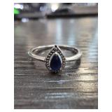 Sterling Silver JWBR Ring with Blue Stone |