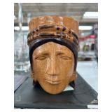 Hand-Carved Wood Mug with Tribal Face Design |