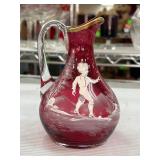 Mary Gregory Style Cranberry Glass Ewer |