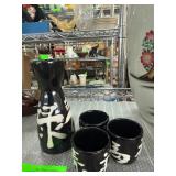 Black Ceramic Sake Set with Asian Characters |
