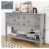 ModernLuxe Cambridge Series Ample Storage Vintage Console Table with Four Small Drawers and Bottom Shelf for Living Rooms Entrances and Kitchens Antique Gray