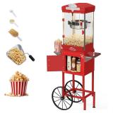 Popcorn Machine, 10 Oz Vintage Popcorn Machine Cart with Wheels, Professional Movie Theater Style Popcorn Popper Makes Up to 40 Cups, Popcorn Maker Machine for Home & Commercial Use (Red)