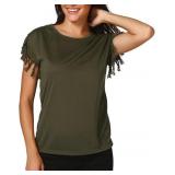 10 PACK Women Blouse, Fashion Women Ladies Summer Loose Sexy Tassel Top Short Sleeve Blouse Casual Tops T-Shirt (M, Army Green)