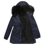 Winter Women's Long Padded Jacket Hooded fleece Thicken Cotton Coat Hooded Warm Jacket (XXL)