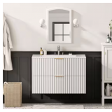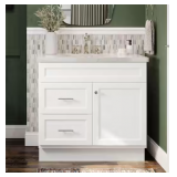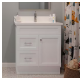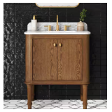 - At 30 inches wide, this vanity offers practical storage with drawers and cabinet space to keep essentials organized. The marble countertop adds durability and a high-end touch, making it a stylish and functional upgrade for everyday use.