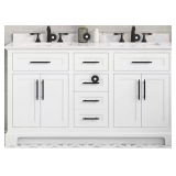 (91). Doveton 60 in. Double Sink Freestanding White Bath Vanity with White Engineered Marble Top (Assembled)