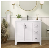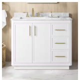 (87). Tamsin 42 in. Single Sink White Bath Vanity with White Round Corner Engineered Marble Top (Assembled)