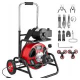 (50). VEVOR Drain Cleaner Machine 100 FT x 3/8 Inch, Auto Feed Sewer Snake Auger, Portable Drain Cleaning Machine with Climbing Wheels, Adjustable Drum, 8 Cutters & Foot Switch for 2" to 4" Pipes