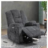 (44). MZ101 Overstuffed Wide, Motor Large Electric Power Lift Recliner Chair with Massage and Heat for Elderly,with USB and Type C Ports,2 Steel Cup Holders,Gray