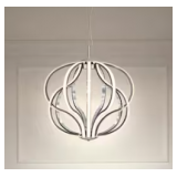 - This hanging chandelier pendant light features a chrome finish and luminously loops that catch the eye. If you favor a modern style, this light adds the magic touch you're looking for. With its LED lights, Meridian offers not only style but also energy efficiency.