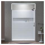 (238) WOODBRIDGE 4-Piece Tile-style Shower Wall Panel Surround Kit, 60"W x 32"D, Staggered Brick Pattern, Easy to Install, High Gloss White Finish