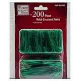 - The Home Accents Holiday 200 Piece Metal Christmas Tree Ornament Green Hooks are small S-shaped metal hooks designed for hanging ornaments on Christmas trees and other holiday decorations. They are typically made of durable metal with a green vinyl or painted coating that blends in with tree branches, helping keep the focus on the ornaments rather than the hooks themselves.