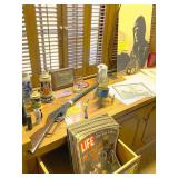 The house is sold! Everything must go! This sale is a great shopping opportunity for the lovers of Mid-century modern. The family traveled, so there are 1950’s era collectible items from England, Italy, and all across Europe. Persons interested in military history will find a house full of collectible military memorabilia including many items from the local bomber unit serving at Carswell AFB and flying the B-36 Peacemaker. Something for the kids? Yes! There are bright & colorful children’s furnishings, toys, a child’s desk, a furnished doll house, & lots of dolls & stuffed animals. A partial list includes: Mid-century velveteen sofa, and other MCM furniture. There are many, many more items, too numerous to mention. Please take a minute to review the photographs. See you soon… and thanks for looking. |
