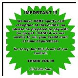 IMPORTANT !!! We have very spotty (at best) cell/internet reception at this particular estate, so please be prepared to pay with (or go get) CASH if we are unable to run a credit card at time of purchase. So sorry, but this is totally out of our control. ~THANK YOU for understanding