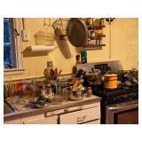 Years of careful storing makes this an interesting sale. Kitchen: Collectibles, ironstone dishes from the 60's, 70's and 80's. Small vintage and antique furniture side tables, dressers, tables, lamps and more. Stereo Equipment: numerous sets and speakers. Records. Clothing collectible vintage clothing. Tools, garden and garage. Grill.Books. Please call for further information. |