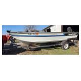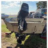 Tractor Weights; Dual 13.6x38 Tractor Tires on 12" Rim; Tractor Parts; Tractor Fenders inc. 2-MM; Minneapolis LP Tank; Torch Sets & Carts; Air Compressors inc. Upright; Vise; Table Top Drill Press; Delta 10” Table Saw; Bench Grinder; Power & Hand Tools; Assorted Hardware; Organizers; Jack Stands; Log Chains; Clevises; Come-a-Longs; Master 50k BTU Heater; Tracker Pro Deep V-16 Boat with Evinrude 60 Motor, Trolling Motor & TrailStar Trailer; SIGNAGE: Fulton Co. 4-H Fair Tractor Pull Banner; Harvestor 69 Sign;