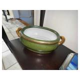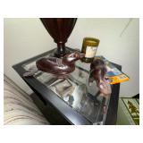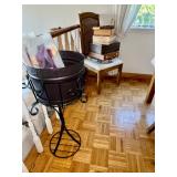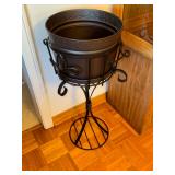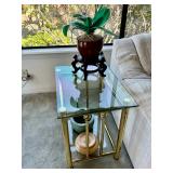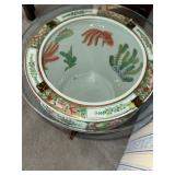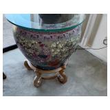 -Large Famille Fish Bowl Planter with ebony stand glass top added for end table capability (2) various sizes