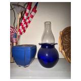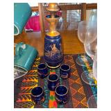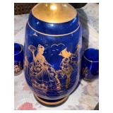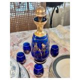 - Cobalt Blue Glass Decanter w/Gold Gilt with 4 matching glasses