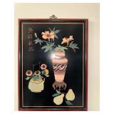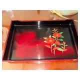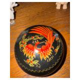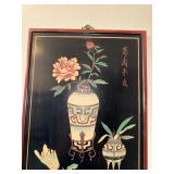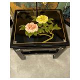 - Red Lantern Oriental Black Lacquer Stool hand painted with roses