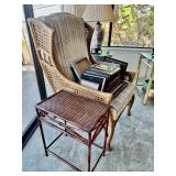 -Tommy Bahama Style Wing Back Wicker and Bamboo Chair