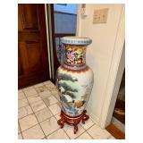 - Chinese Rose Vase Famille Exotic Birds approx. 4' tall