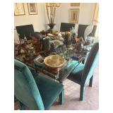 DANISH MODERN TEEK FURNITURE - JASPER, MCM 3 PC LEATHER LIVING ROOM SUITE, DINING TABLE GLASS & BRASS 5FT SQ, 6 TEXEDO VELOUR GREEN CHAIRS, HENRIDON CRYSTAL CABINET, KIT LONEY, ORIGINAL ART, ART GLASS & BRONZE, SLAG GLASS, TIFFANY STYLE LAMPS, EGYPTIAN THEMED ART & ACCESSORIES, BOOKS, AMERICAN COMMEMORATIVE STAMP COLLECTION, CLIPPER SHIP MODEL, COPPER, BRASS, BOEHM, RESTORED OAK ICEBOX, CLOCKS, ART POTTERY, VICTORIAN BRIDAL BASKET, DISPLAY CABINETS, TRADITIONAL FLORAL SECTIONAL SOFA, ASIAN CABINETS & ART, GRANDFATHER CLOCK, GLASS DINING TABLE, HARVEY DUNNER STEIN, OTIC WEBER, WILLIAM BOWIE, MAITLAND-SMITH