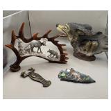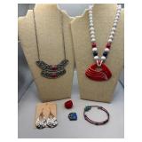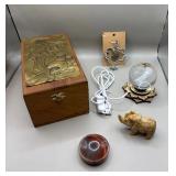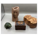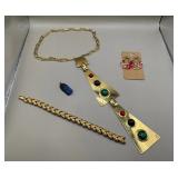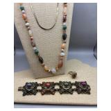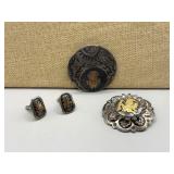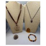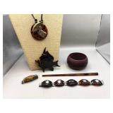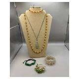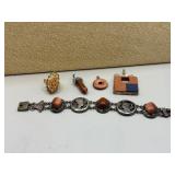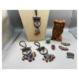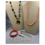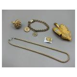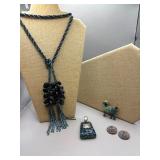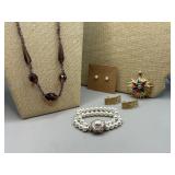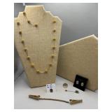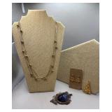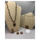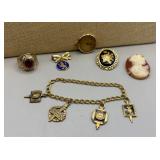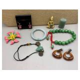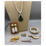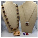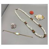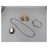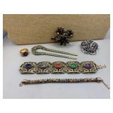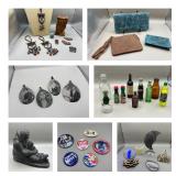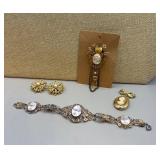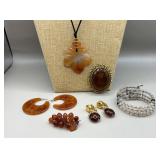 Curated collection of vintage and antique jewelry pieces, many signed, as well as carved stone figures, perfumes, etched glass, belt buckles, pocket knives, tooled leather wallets, and wooden puzzle boxes. Coordinating newer jewelry pieces included in some lots. Variety of styles including cameos, rhinestones, gold filled, enamel, shell, charm bracelets, beaded necklaces, pendants and bracelets including jade, amber, carnelian and more. Sale closes Tuesday 3/31 from 7-9pm - Pickup on THURS 4/2 from 1pm-5pm in Leander.