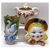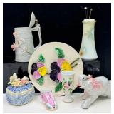 Bidding on ALL items starts at $1! This sale is filled with names every serious collector will recognize with the following list being only a sampling of what you will find here: Fenton, Fiestaware, Bauer, Shawnee, Homer Laughlin, "Enid Collins" Handbag, Goofus Glass, "Waco Melody in Motion" Clown Figurine, Rosenthal, Haviland, Pyrex, Lefton, Seltmann Wieden, Whiting and Davis, Davis Alumesh, and collections of vintage wall pockets, and handbags.