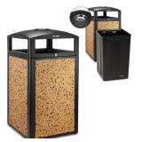(128) Alpine Outdoor Commercial Trash Can with Lid - 40 Gallon Heavy Duty Metal Garbage Can with Removable Bin, Locking Lid & a Modern Look in Park & High Traffic Areas (Black, Brown Stone Panels with Tray)