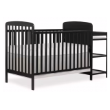 Dream On Me Synergy 5-in-1 Convertible Full-Size Baby Crib with Toddler, Day & Full Bed Conversion in Black, GreenGuard Gold & BSA, 3 Mattress Heights, Sustainable Pinewood