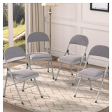 VECELO Set of 4 Folding Chairs, Fabric Dining Chair Set with Padded Cushion and Back, Indoor Outdoor Upholstered Seat with Metal Frame for Home Office Events Wedding Party, Dark Gray